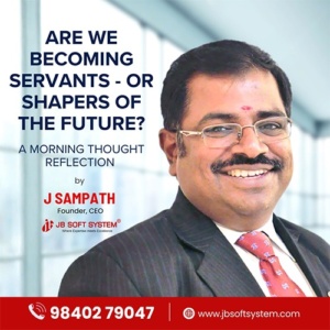 “Are We Becoming Servants – or Shapers of the Future?” A Morning Thought Reflection by J Sampath, Founder of JB Soft System